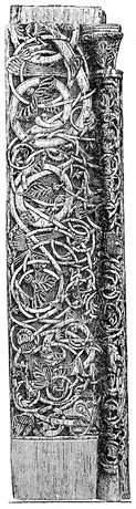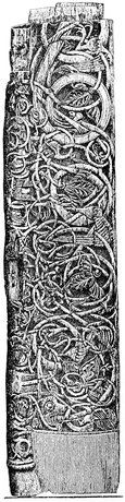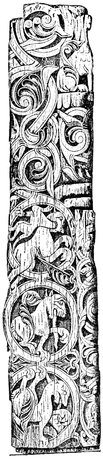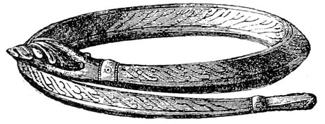 388. Lod-Brók = Hairy breeches. He made a dress of hairy breeches and a hairy cloak, which he boiled in pitch and then hardened: this was done in order that he should be able to attack the serpent which watched over Thora, who was said to surpass all other women in beauty as the hart does other animals, and was most accomplished in all handiwork. Afterwards he appears to have married Aslaug, the daughter of Sigurd Fafnisbani by Brynhild. They begat several children. The oldest, Ivar, had no bones in his body, but was very wise; the others were Bjorn, Hvitserk, Rognvald, and Sigurd (Snake-eye).