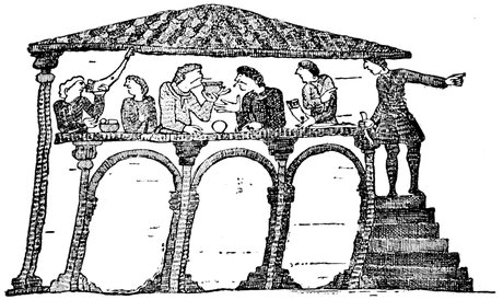 455. The testudo of the Roman armies, in which the warriors’ shields are interlocked like the scales of a tortoise, forming a protecting roof for the undermining or attacking of walls.