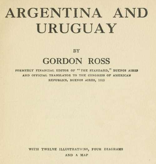 The Project Gutenberg EBook of Argentina and Uruguay, by Gordon Ross This eBook is for the use of anyone anywhere in the United States and most other parts of the world at no cost and with almost no restrictions whatsoever. You may copy it, give it away or re-use it under the terms of the Project Gutenberg License included with this eBook or online at www.gutenberg.org. If you are not located in the United States, you'll have to check the laws of the country where you are located before using this ebook. Title: Argentina and Uruguay Author: Gordon Ross Release Date: December 16, 2017 [EBook #56186] Language: English Character set encoding: UTF-8 *** START OF THIS PROJECT GUTENBERG EBOOK ARGENTINA AND URUGUAY *** Produced by MFR, Adrian Mastronardi and the Online Distributed Proofreading Team at http://www.pgdp.net (This file was produced from images generously made available by The Internet Archive)