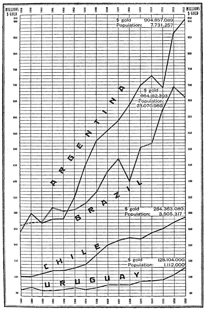 | Increase of trade during past two decades—United Kingdom imports of grain and meat—U.K. exports, showing importance of Argentina and Uruguay—British capital invested in Argentina during first half of 1914—Trade of the U.S. with S. America—U.S. exports, showing importance of Argentina—Argentine imports from Europe in 1913—The rich productiveness of Uruguay—Increase of Argentine and Uruguayan exports—Public works and small budget surpluses—Buenos Aires commercial and industrial census, 1914; bread and smoke(!)—Italian and Spanish retail traders—Russians and Jews | 127 |