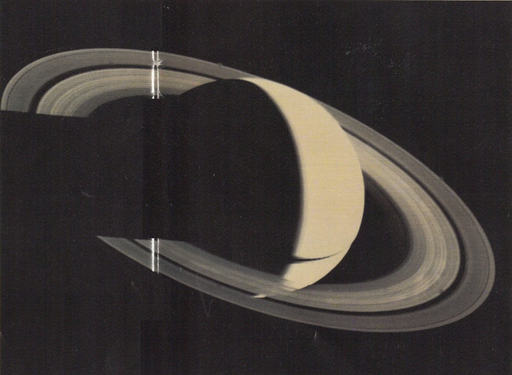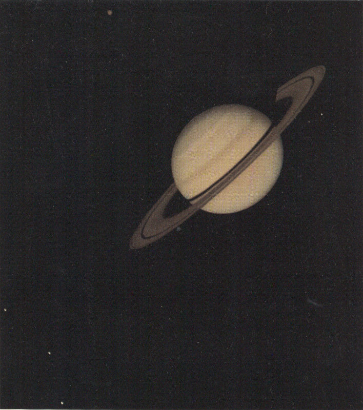 The pictures assembled in this publication are a part of the rich and varied harvest of information returned by Voyager 1 across nearly a billion miles of interplanetary space. These images are of great beauty as well as great scientific interest, serving to remind us of the awesome and breathtaking dimensions of the solar system we inhabit. Voyager is providing intriguing new information which should help us to understand how the Earth—and possibly the universe—was formed. Already there have been surprises and puzzles that paint a completely new picture of Saturn and its neighborhood, including the discovery of three new moons, startling information about Saturn’s rings, and observation of the unexpectedly complex structure of Saturn’s atmosphere and that of its largest moon, Titan. It will take years for scientists to assimilate completely the information which is cascading down from Voyager. What more will this marvel of technology have to tell us before it departs the solar system to travel endlessly among the stars?