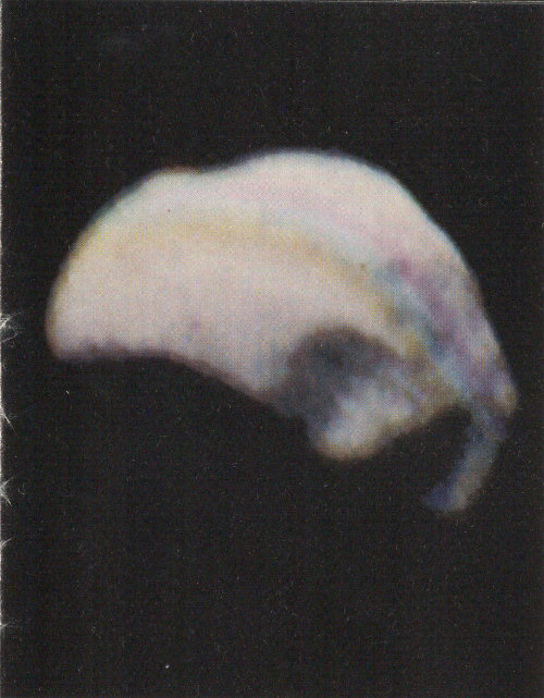 Over 95 individual concentric features can he counted; the final count in higher resolution images may be anywhere from 500 to 1000 separate rings. A few of the ringlets shown in this computer-assembled mosaic are not concentric circles but are instead elliptical. Ring particles are probably ice or ice covered rock.