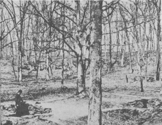 Spangler’s Spring, the right of the Federal battle line of July 2 and 3. This view, made in 1870, shows the wartime appearance of the spring. (Tipton photograph.)