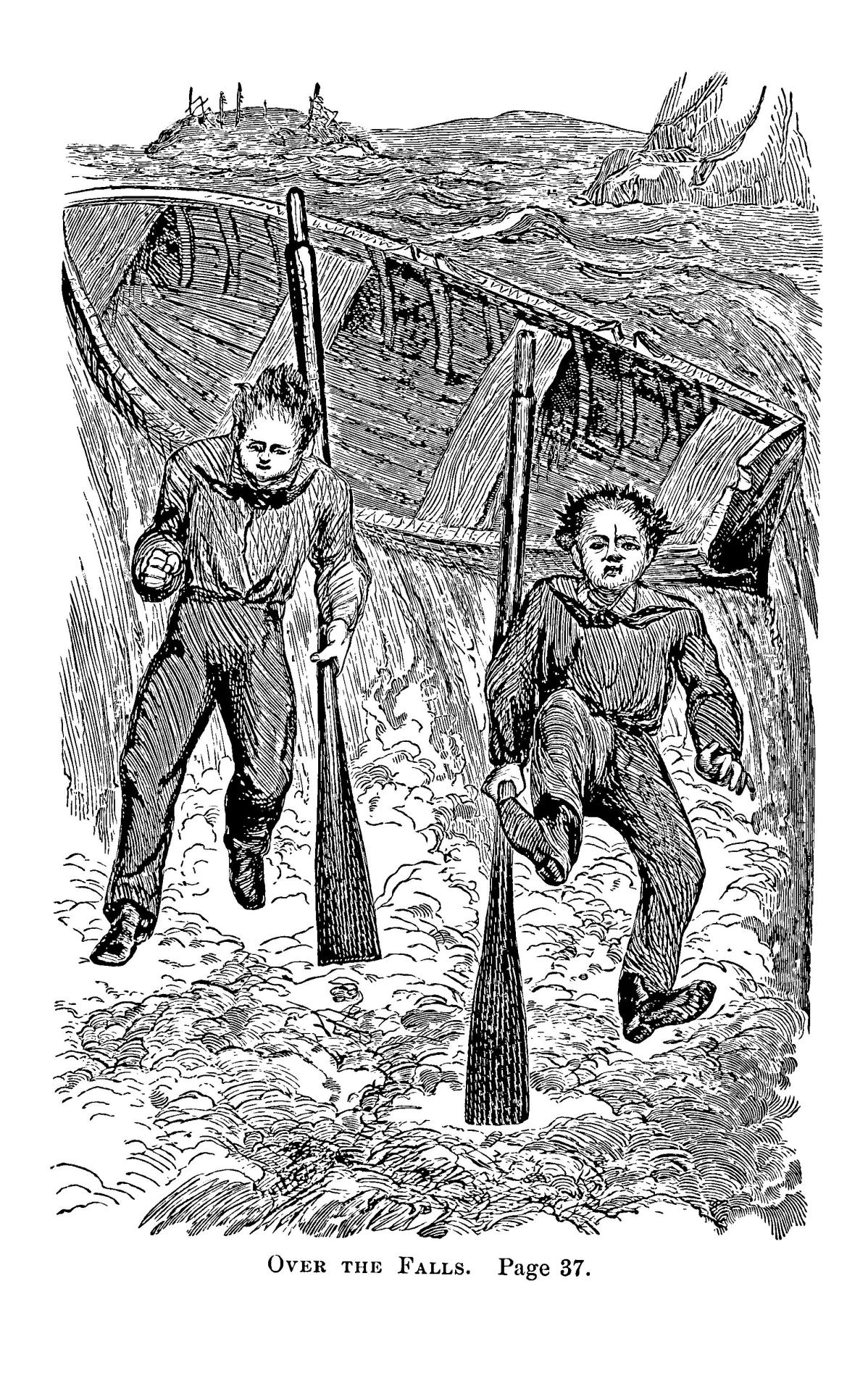 As for Bart, he was in a different position altogether. He had been taken there once, and consequently knew all about them; and thus there was no mystery to attract him. In the second place, his father had forbidden him, most positively and most solemnly, from ever having anything whatever to do with any boat above the Falls. The prohibition was one which was so final, that the idea of disobeying it never for one moment entered into his head; and when Pat had mentioned his wish to visit the islands, he had refused so positively, and had warned him against it so earnestly, that Pat from that moment never alluded to it again in his presence. In this matter Phil was influenced by Pat, rather than by Bart; that is to say, he listened rather to Pat’s enthusiastic descriptions of those mysterious islands than to the somewhat unsatisfactory warning which Bart had given; and the only result of that warning was, that he and Pat began to devise in secret some plan by which they might achieve their desire.