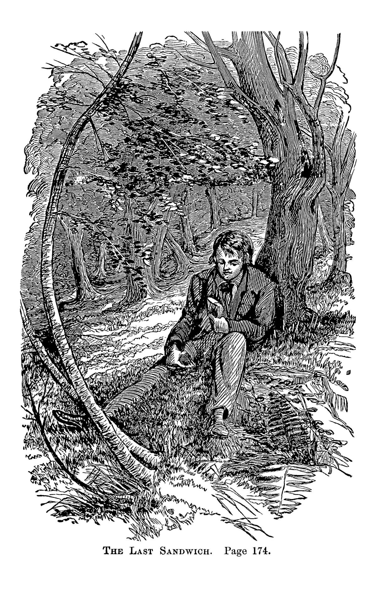 The Wanderer on his winding Way.—The Bewilderment of the Forest.—Swamps and Bogs.—? The friendly Brook.—Following the Flow of the running Water.—A pleasant Course.—An encouraging Discovery.—Astray once more.—He sinks to Rest.—The last Sandwich.