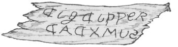 B.B. looked warily round, on emerging from the scrub, then cautiously approached, and, after a casual glance at the windlass, seized the rope and disappeared. The shaft was only about 18 feet deep. A drive ran in for some distance from each end along the gutter. B.B. produced a candle, and examined the workings, then drew a tin containing gold dust from his pocket. He paused, again studied the strata and slate underfoot, then tested it with a pick. Now, B.B. was a geologist—of a sort. He had not learned the science by correspondence, but by working on most of the alluvial fields in the “rush” days. The candle burned down almost to the clay, as he hesitated. Then he remarked: “False bottom, like the McIvor lead,” and returned the gold to his pocket. Taking a length of broken board, he wrote on it with a piece of pipe-clay, and drove the sharp end into the floor, at the entrance to one of the drives, remarking: “If he gets nothing out of it, I’ll salt his show later.” Although he could read print, B.B. did not profess to be able to write—in fact, he used to sign for his miner’s right with a cross—so the spelling presented difficulties, in particular the word “father.”
