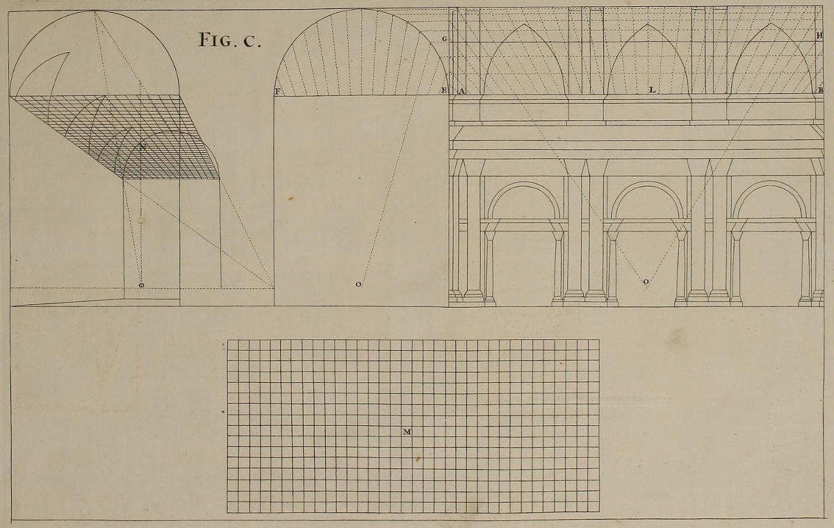 ’Tis something unaccountable, that, among so many learned Persons as have handled this Subject, Priests, Architects, and Painters; very few, if any of them, have given Directions proper for shunning that Disorder and Confusion of Lines, which, in most Instances, must necessarily attend the Execution of their Rules: In all or most of which, the whole Space for the Performance is confin’d between the Lines of the Plan and Horizon; which, where the Scale is small, and the Height of the Eye not very much advanc’d, renders the Work exceedingly confus’d; and where those Lines are coincident, (which frequently happens) the Method becomes utterly impracticable.