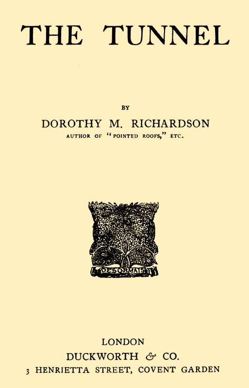 The original spelling and punctuation were mostly preserved. In “The Tunnel”, Dorothy Richardson experimented with punctuation, in particular leaving out many commas, in order to promote “creative collaboration” with the reader. Therefore, punctuation was mostly left unchanged, as was the varying usage of hyphens.