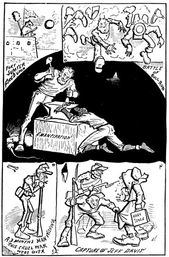 When it first became noised abroad that we contemplated bringing out an illustrated history of the United States we were deluged with letters from a host of well-disposed persons, such as Thomas Carlyle, James Parton, Wendell Phillips and others of more or less literary ability, offering to “write up” to our pictures. Mr. Carlyle said he could do it nights. But the public was not to be trifled with, so we resolved to put our shoulder to the literary as well as the artistic wheel, as it were, and we flatter ourselves we have demonstrated in these pages that truth is more of a stranger than fiction.