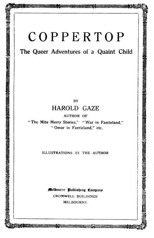Mrs. Grudge could not abide a nickname, and never used the term “Coppertop” by which the child was known to everyone else; she was of the old school, stern and strict, and had come out in the early days from Home. She could not understand “these colonials,” she would say, and Coppertop’s cheeks would glow and her auburn plaits would seem to grow even more coppery, for she was an Australian bred and born, and proud of it, too, and simply hated to be called one of “these colonials.”