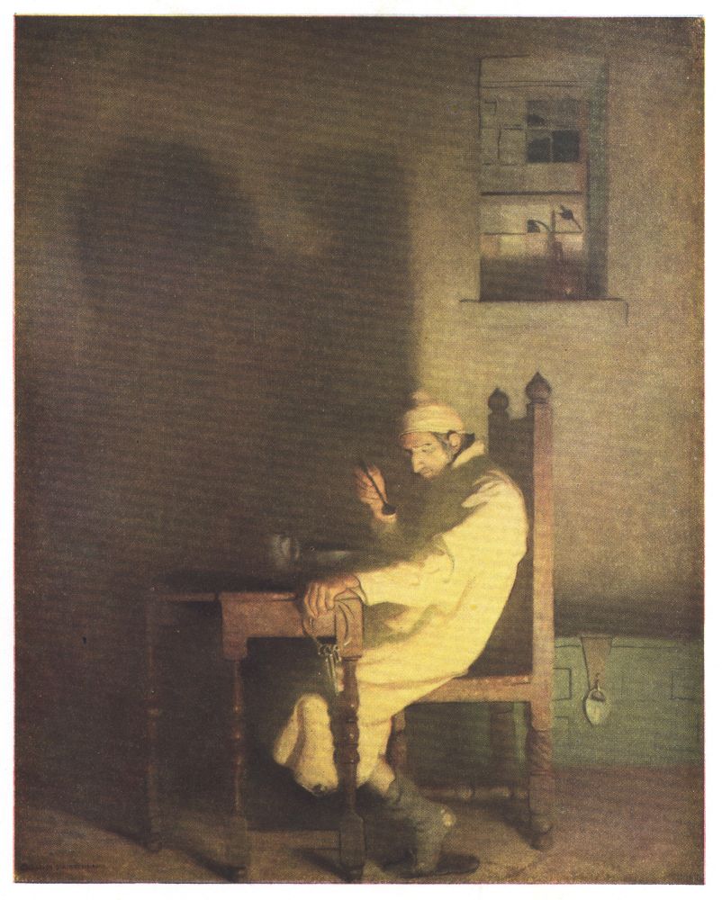 “Why, very well said,” replied Mr. Campbell, heartily. “And now to come to the material, or (to make a quibble) to the immaterial. I have here a little packet which contains four things.” He tugged it, as he spoke, and with some great difficulty, from the skirt pocket of his coat. “Of these four things, the first is your legal due: the little pickle money for your father’s books and plenishing, which I have bought (as I have explained from the first) in the design of re-selling at a profit to the incoming dominie. The other{7} three are gifties that Mrs. Campbell and myself would be blithe of your acceptance. The first, which is round, will likely please ye best at the first off-go; but, O Davie, laddie, it’s but a drop of water in the sea; it’ll help you but a step, and vanish like the morning. The second, which is flat and square and written upon, will stand by you through life, like a good staff for the road, and a good pillow to your head in sickness. And as for the last, which is cubical, that’ll see you, it’s my prayerful wish, into a better land.”