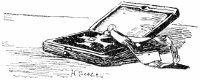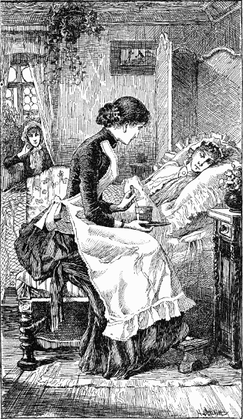 »Bitte, lassen Sie jetzt das gut sein, Jungfer Suse!« sagte der Kommerzienrat in sehr höflichem Tone. »Das Reiben auf dem[S. 8] wackeligen Tische macht ein nervenangreifendes Geräusch. Doktor Bruck wünscht in erster Linie Ruhe für den Papa.«
