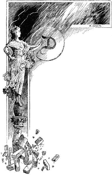 Er schlug den eisernen Thürflügel möglichst lautlos zurück — sie standen sichtlich unberührt, die Geldsäcke, das Piedestal des ehemaligen Müllerknechtes, und neben den Stößen von Wertpapieren türmten sich in blinkenden Säulchen die Goldstücke aufeinander. Sein bewundernder Blick flog hastig über das Schriftstück, das er vorhin infolge leicht begreiflicher Spannung und Erregtheit allzuflüchtig in eines der musterhaft geordneten Fächer geworfen hatte — es war das Verzeichnis des Gesamtbesitztums. Welche imponierende Summen reihten sich da aneinander! Sorgsam schob er das Papier auf die anderen Dokumente; dabei aber geschah es, daß er eines der Geldröllchen umstieß — klirrend rollte eine Anzahl Napoleondore auf die Dielen nieder. Wie abscheulich das klang! Es war fremdes Geld, das er berührt hatte! Schrecken und eine an sich ungerechtfertigte Scham trieben ihm das Blut in das Gesicht; unverzüglich bückte er sich, um das Geld aufzulesen. In diesem Moment warf sich ein schwerer, massiger Körper von rückwärts über ihn her, und harte, grobe Finger würgten ihn am Halse.