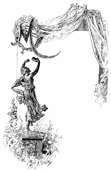 In dem Salon dort, am Thee- und Whisttische der verwitweten Frau Präsidentin Urach, hatte sich eine zahlreiche Abendgesellschaft eingefunden. Die sehr tiefgehenden mächtigen Glasscheiben und das klar durchsichtige Bronzegeflecht des niedrigen Balkongeländers gestatteten einen vollkommenen Einblick in den Salon. Seine farbenglänzenden Wandgemälde, die faltenschweren Thürbehänge von veilchenblauem Samt, der schwebende Kettenleuchter von Goldbronze, den die mit dem Silberlichte des Gases gefüllten Milchglaskugeln wie riesige Perlen umkreisten, ließen ihn feenhaft, aber auch herausfordernd wie eine Schaubühne aus dem intensiven Dunkel des Winterabends treten ... Ein Windstoß pfiff durch die Allee und schüttete ein Gemisch von Schneeflocken und dürren Lindenblättern wie toll über den Balkon her; die vornehme Ruhe hinter den Scheiben ließ sich nicht alterieren durch den groben Gesellen; nicht einmal das luftige Gewebe der Spitzengardinen bewegte sich — höchstens daß der Feuerkern im Eckkamin unter seinem grimmigen Atem für einen Moment höher aufglühte.