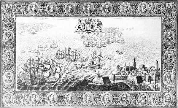 Such were the Directions given. [34]And accordingly Cities, Counties, Towns, and Villages, the Cinque-Ports, and all other Havens of England, manifested as great Forwardness in their zealous Love and Duty, as either Subjects could perform, or Prince expect. The City of London, in particular, being requested by the Privy-Council, to find five thousand Men, and fifteen Ships, they willingly and cheerfully furnished thirty Ships provided with all Necessaries, and ten thousand able Men, well armed and trained; besides which, they kept in readiness thirty thousand Men more, prepared to march wherever there should be Occasion[35]; and also lent the Queen fifty one thousand nine hundred Pounds, in ready Money.