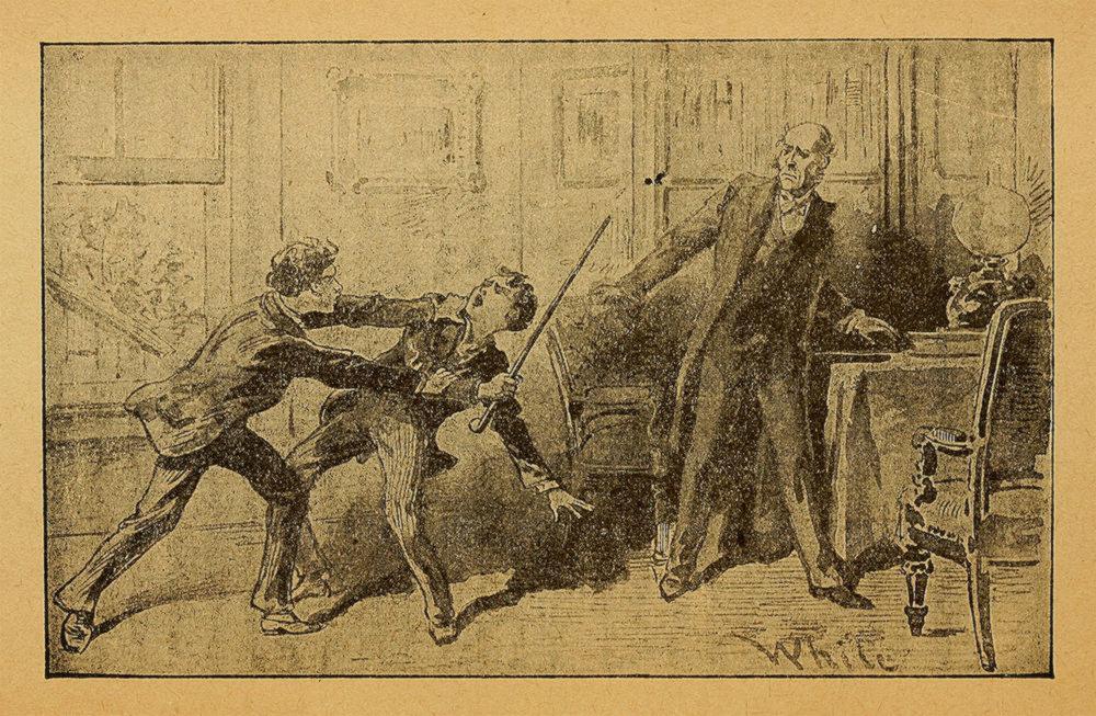 To say that Oliver kept calm under this aggravated attack would be incorrect. His eyes flashed with anger. He threw his books upon the lawn, and put himself in an instant on guard. A moment, and the two boys were engaged in a close struggle.