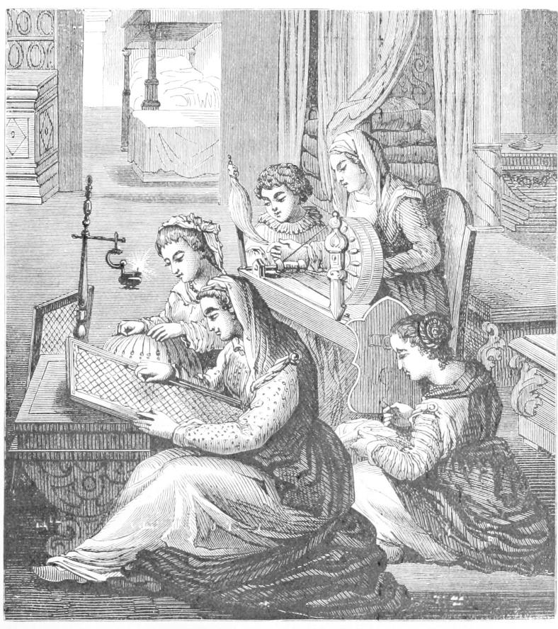 The chapters on Spain, Alençon and Argentan, and the Introductory chapter on Needlework, have been almost entirely rewritten. Much new matter has been added to Italy, England and Ireland, and the notices of Cretan and Sicilian lace, among others, are new. The original wood-cuts have been preserved with their designations as in the 1875 edition, which differ materially from the first two editions. Nearly a hundred new illustrations have been added, and several portraits to show different fashions of wearing lace.