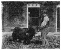 The dairy, which was built some time in the eighties, is, or rather was, of Swiss design, but mother Nature has of late so bedecked it with climbing plants that it is difficult to detect the handiwork of man under its dainty mantle of greenery. Entering first the dairy proper, one sees a beautifully cool, lofty room some twenty odd feet square, with a plain tiled floor, and a handsome high dado of rare old blue and white Indian tiles, which were specially sent from India to occupy their present position. A row of tables surrounds the room, and a most welcome sight after the walk in the blazing sun these are, at present occupied by some thirty or forty flat pans of such milk as we London folk only dream of.