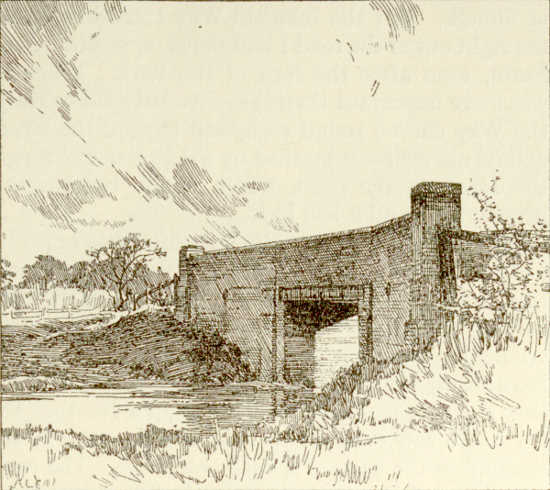 A hundred yards or so before the road I was on bridged the Didcot, Newbury, and Southampton Railway I noticed the line of a hedge leaving on the left at an acute angle, and forming a triangle with the railway and road for its other sides. As an old road is not likely to form such triangular fields, except with the help of a new branch, it occurred to me that this branching hedge marked an earlier or original line of the same road, or of one coming from Upton village, and there connected with the field roads from Blewbury and Aston. Across the railway another hedge and a depression that might once have been a road continued this line and led naturally into a lane turning out of the main road on the left beyond the bridge and passing Upton Vicarage. I supposed that when the railway cutting was made to have left these crossing roads in their original state would have meant making two bridges or one very broad one necessary. The courses, therefore, were slightly altered, so that, instead of a crossing or “four-went way,” there was a road receiving a branch at one side of the bridge, and a second branch from an opposite direction, the left, at the other side. But on referring to the old six-inch Ordnance Map, made before the railway, I found that I was mistaken. The amended crossing may have been made when the old road was superseded by the turnpike. This left-hand road being the likely-looking road on the map, I followed it, especially[275] as the main road, half a mile beyond, by the “Horse and Harrow,” at West Hagbourne, took a right-angled turn which suggested a piecing together of two older roads, an east-and-west one and a north-and-south one.