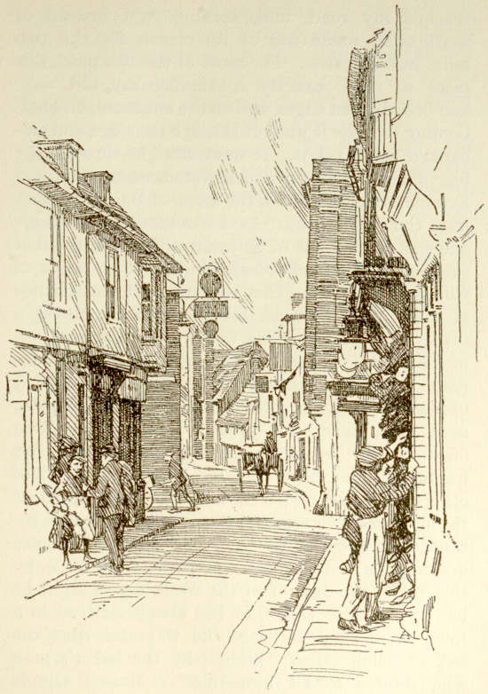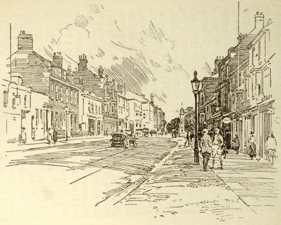 I hoped to find a cart track going west from the other side of this road. For about a quarter of a mile I thought I found it raised a little in the stubble.[288] It had been sown and reaped like the rest of the field, but it was a little weedier and grassier. It was making over the swelling arable for Lark Hill and the south edge of Wantage, but I could not find it in the clover nor in the barley beyond that. I therefore turned north into Round Hill, a straight piece of hard road going west into Wantage, with no hedges but grassy borders between it and the arable on either side. This may be the Icknield Way or its successor. It led into the main road at the edge of Wantage, and this I followed into the town. In the first few yards I noticed the sign of the “Lord Nelson” on the left. I recognized it as the work of that venerable artist who designs the faces of guys and turnip-men all over the country. I could tell that the man upon the signboard was Nelson because the uniform corresponded to the name painted below. The face was as much like Nelson as King George III, and it was entirely different from that on the other side of the board. Nevertheless, the effort was to be preferred to a more accurate portrait painted by a builder and decorator’s man from a picture in a history book. It was an effort to represent an image of a hero. The builder and decorator’s man would have aimed simply at reproducing something which impressed him because it was in a printed book: his horses do not represent what he knows or feels about horses, but what he is able to crib from a photographer in a book advertising somebody’s food or embrocation; his “Coach and Horses” is painful to see, because it ought obviously to be in a book.[289] May it be long before he is allowed to molest the shape of the horse or dragon carved into the turf of White Horse Hill. In its present shape it could not be used to advertise horse food or embrocation: but the horse above Alton Priors could be so used and doubtless one day will be.