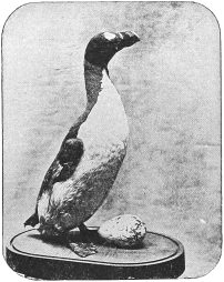 The south side of this room (right on entering) is chiefly reserved for the remains of extinct Birds, including the famous Lizard-tailed Bird (Archæopteryx) of the Solenhofen beds of Bavaria (fig. 48), the oldest known member of the class. Although presenting many Reptile-like characters, it had well-developed feathers on the wings and tail, the impressions of which are beautifully preserved in the specimen. A series of skeletons of the “Moas,” or Dinornithidæ, of New Zealand, birds in which no trace of a wing has been discovered, shows the diversity in size of different members of the group, some83 far exceeding any existing Ostrich, while others are scarcely larger than a good-sized Turkey. Some of these remains are so recent as still to be covered with dried skin, and even feathers. Several eggs are also shown; but, large as these are, they are greatly exceeded in size by those of the Roc (Æpyornis) from Madagascar. The skull and certain other remains of a gigantic extinct bird, Phororhachos, from Patagonia are also shown in this room. These birds appear to have been allied to the existing South American Seriema.