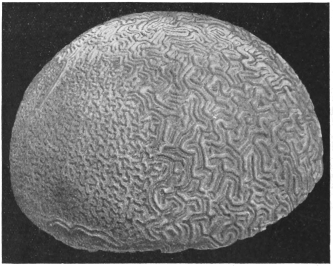 The next gallery contains the Cephalopods, a group of Molluscs abounding in extinct species, of which the Belemnites, Turrilites (fig. 55), and Ammonites (fig. 56) are some of the best-known. The form and structure of their nearest living representatives, the various species of Cuttle-fishes, Squids, Argonauts, and Nautilus (fig. 31, page 62) are illustrated by models, drawings, and specimens placed near the entrance of the gallery and along the top-line of the wall-cases. The third gallery contains the remaining Mollusca, with the Brachiopoda, Polyzoa, Echinoderma, Worms, and Crustacea; the fourth, the Corals, Sponges, Protozoa, and Fossil Plants. In these last two galleries most of the British specimens are placed in the table-cases, and those of foreign origin in the cases round the walls.