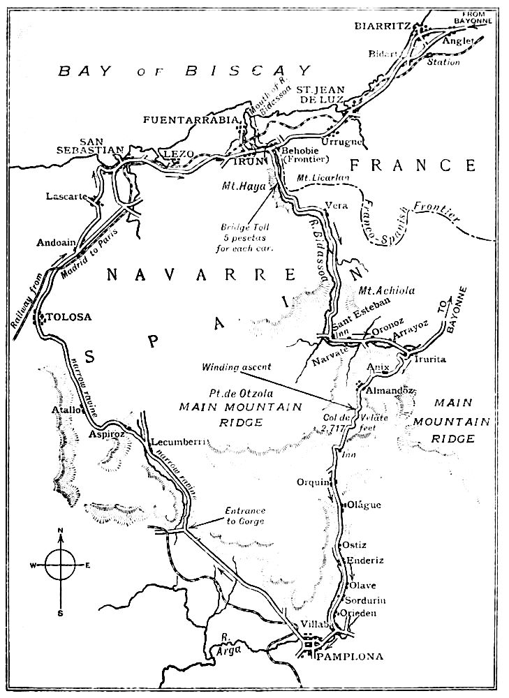 For those who either do not possess cars or do not wish to take their own abroad, the simplest method is to hire a car in England. The author’s experience of hiring from the Daimler Company has been so satisfactory that he is glad of this opportunity of recommending their cars. To Mr. A. H. Hallam Murray the author is greatly indebted for permission to reproduce four of his delightful pictures from ‘On the Old Road through France to Florence.’
