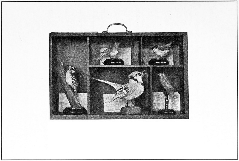 The specimens are delivered to the school in a wooden carrying case about the size of an ordinary suitcase. The birds are mounted on individual pedestals and can easily be removed from the case. Thus the specimens may be used singly or collectively. They can be handled and seen from all sides.