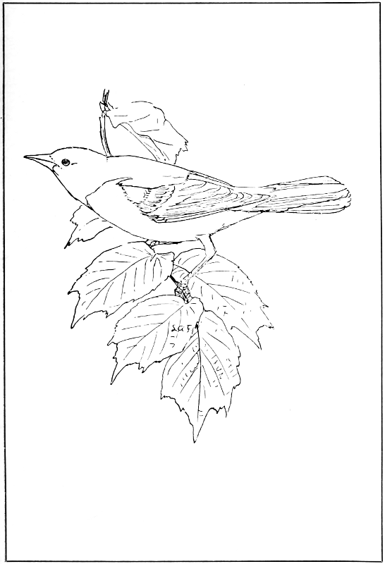 Scarlet Tanager—Red-eyed Vireo—Goldfinch—Hummingbird—Pigeon.
