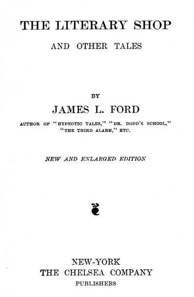 The Literary Shop was first printed in book form in the fall of 1894, nearly five years ago. Some of its constituent papers had already appeared in the pages of Truth and Puck. To the present edition have been added the sketches that deal with life and letters in the McClure village of Syndicate. This model literary community was established about four years ago, on a convenient and healthful rise of ground overlooking the Hackensack River, which is navigable at that point. It has a population of several hundred poets and prose hands, all of whom are regularly employed on the magazine and the newspaper syndicate controlled by Mr. S. S. McClure. These sketches are reprinted by permission from the New York Journal and the Criterion.