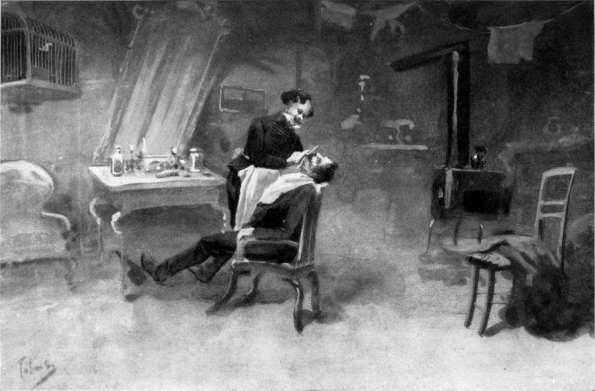 – Pálinkás jó reggelt, nótárus uram! hol jár itt? – üdvözlé egy félszemű borbély, ki éppen fülmetélő vatermörderjét (gallér) kötözé egy darab tükörből, s hideg kolbászt falatozott akközben.