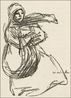 Mais, Steinlen? me direz-vous, Steinlen, où est-il dans tout ceci? J’y viens. Il n’était pas inutile de parler de tout ce qui n’est pas lui, pour faire mieux comprendre par élimination et contraste ce qu’il a apporté. Steinlen? C’est bien simple. Il a vu ce que les autres ont vu. Seulement, avant de dessiner, c’est dans son cœur qu’il a regardé.