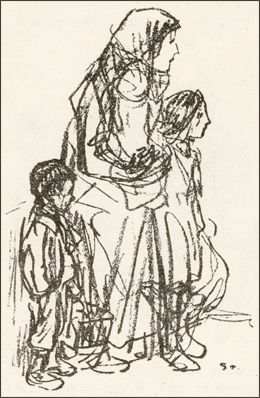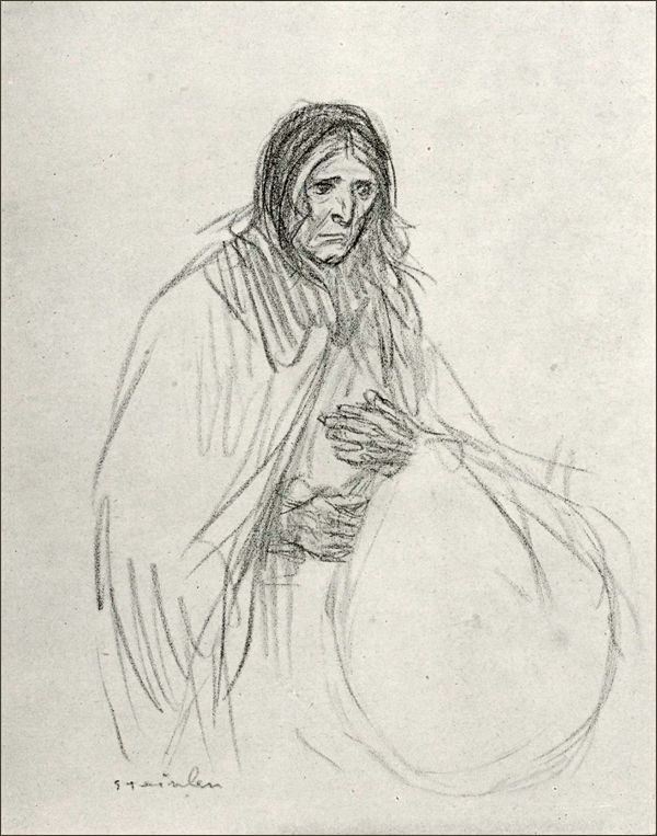La Vieille des Ruines, hors texte d’après une lithographie de Steinlen.