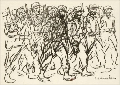 E désir d’exprimer graphiquement cette guerre a troublé et dévoyé beaucoup d’artistes. Pour faire de très belles choses, il aura suffi à Steinlen de regarder profondément en lui-même, de rester profondément logique avec lui-même.