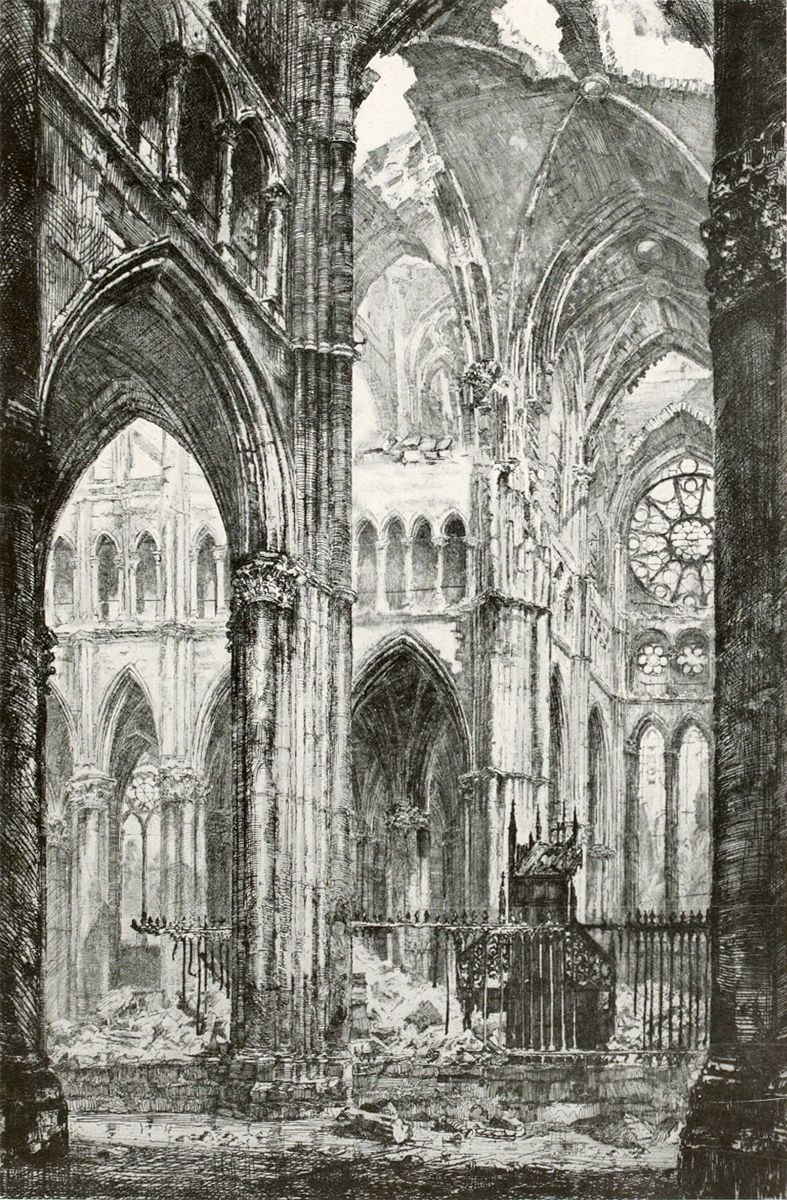 Intérieur de la Cathédrale de Reims, en Janvier 1918, hors-texte d’après une eau-forte de Louis Orr.