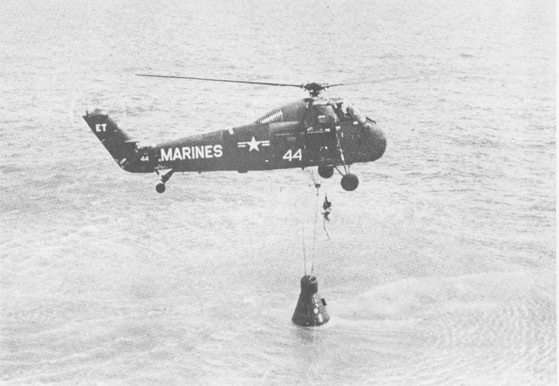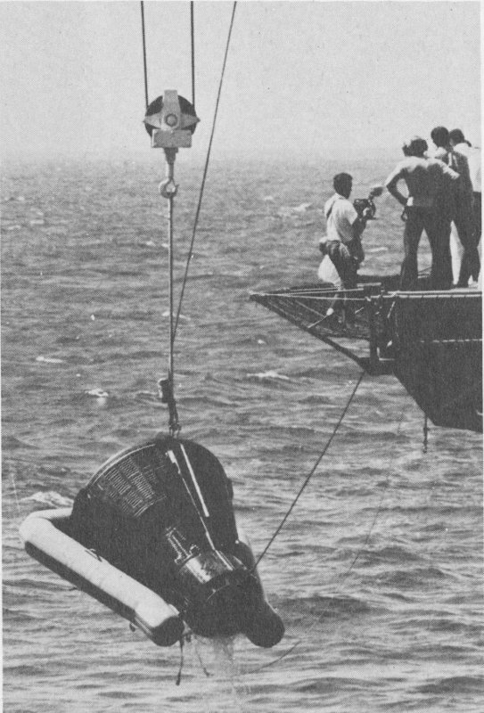 12. Well over 1.6 million kilometers (1 million miles) later, Gemini 4 is hoisted from the Atlantic Ocean.