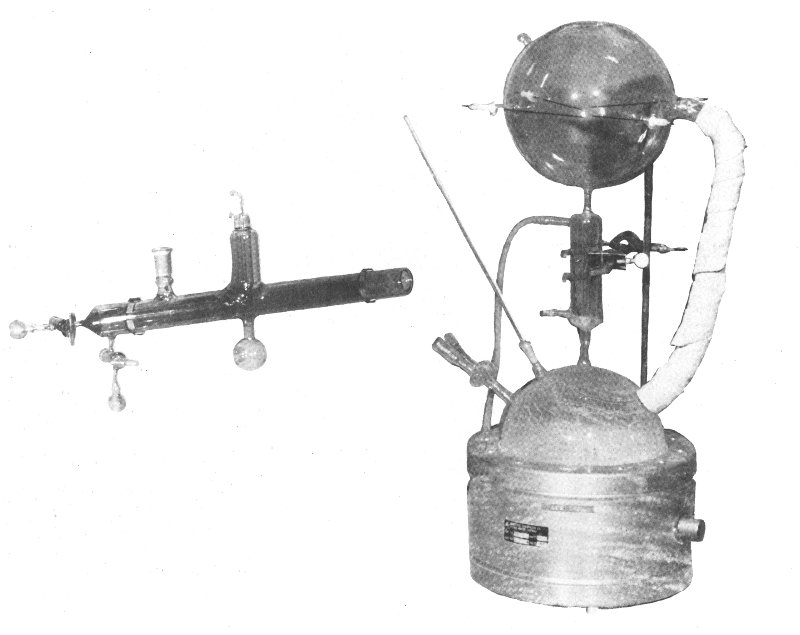 These experimental devices were constructed by Cyril Ponnamperuma and his colleagues to show that various forms of energy may be used to produce organic molecules of the type found in living organisms.