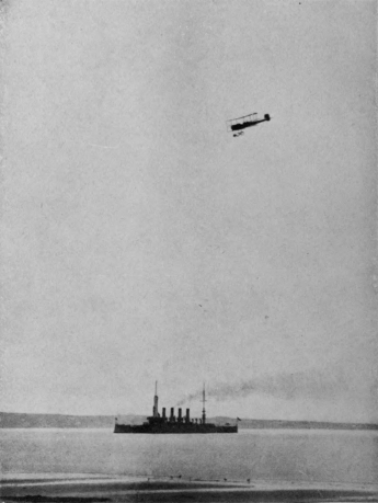 | Army airplane gliding to North Island Over U. S. Cruiser “San Diego” | Frontispiece | ||