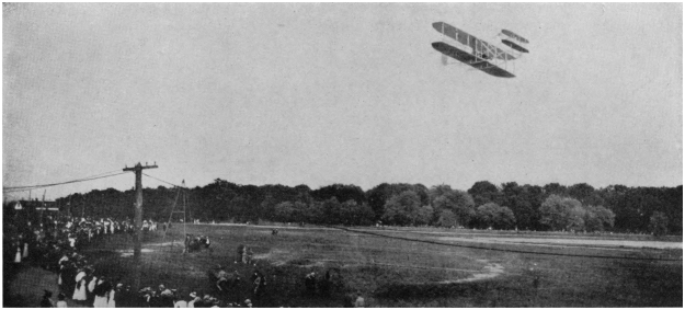 Early Studies in Aëronautics.—Unofficially, however, the coöperation extended back some fifteen years prior to that time, when the writer was in charge of the local office of the Weather Bureau at San Diego, and assisted the aëronautical engineer,12 Octave Chanute, in his observations and experiments on San Diego Bay.G At this time hundreds of photographs of sea-gulls, pelicans, and other soaring birds were made, and both birds and photographs studied and analyzed. Ever since then more or less interest has been taken by the writer in aërial navigation. During an assignment to the Central Office the work of the Wright brothers was observed and studied. The association with the late Octave Chanute and his friends, the Wrights, during their experimental flights at Fort Meyer, Virginia, in September, 1908, is counted among the many pleasant memories of the Washington visit. It was here that was witnessed the first flight with a passenger (see Fig. 4), Mr. Orville Wright taking up with him Major (now Colonel) George O. Squier, the present head of the aviation branch of the army. Such was the infancy of the flying-machine that at that date no fatalities had occurred. A few years later the writer had the pleasure of accompanying Mr. Glenn Curtiss while he was determining a site for his school, which was finally located on North Island. (See Fig. 6.) Shortly afterward, from this place, Harry Harkness made record amateur cross-country flights in an Antoinette monoplane.