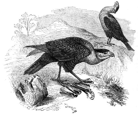 THE VULTURE FALCONS (Polyborus):—The Chimango—The Vulture Buzzard—The Carancho or Traro. SCREAMING BUZZARDS (Ibicter):—The Ganga—The Secretary or Crane Vulture 56-64
