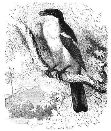 THE TOOTH-BEAKED SINGING BIRDS (Dentirostres). The SHRIKES (Lanius):—The Sentinel Butcher Bird, or Great Grey Shrike—The Southern Shrike—The Grey, or Black-browed Shrike. The BUTCHER BIRDS PROPER (Enneoctonus):—The Red-backed Shrike, or True Butcher Bird—The Red-headed Shrike, or Wood Chat—The Masked Shrike. The THICK-HEADED SHRIKES (Pachycephalus):—The Falcon Shrike. The BUSH SHRIKES (Malaconotus). The FLUTE-VOICED SHRIKES (Laniarius):—The Scarlet Shrike—The Flute Shrike. The HOODED SHRIKES:—The Tschagra—The Helmet Shrike. The CROW SHRIKES (Cracticus):—The Magpie Shrike. The RAVEN SHRIKES (Thamnophilus):—Vigors' Raven Shrike. The DRONGO SHRIKES (Edolius):—The King Crow, or Finga. The DRONGOS (Chaptia):—The Singing Drongo. The FLAG-BEARING DRONGOS (Edolius or Dissemurus):—The Bee King. The DRONGO SHRIKES. The SWALLOW SHRIKES (Artamius):—The Wood Shallow Shrike 140-158