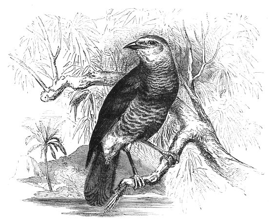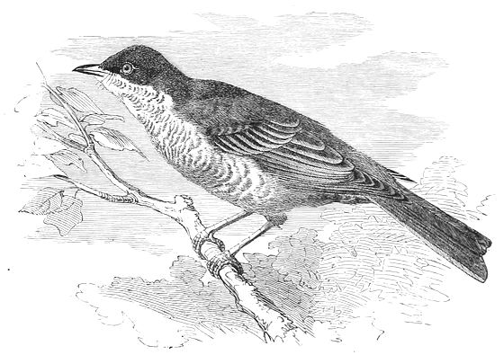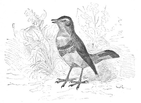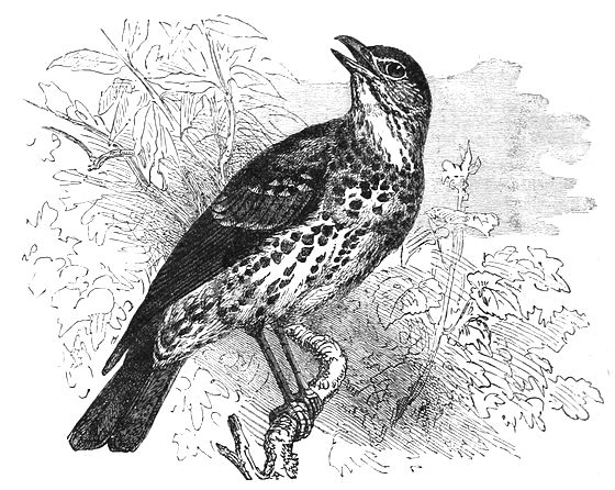 THE THRUSHES (Turdus):—The Red-winged Thrush—The Red-throated Thrush—The Pale Thrush—The Siberian Thrush—The Wandering Thrush—The Hermit Thrush—Wilson's Thrush—Swainson's Thrush—Dwarf Thrush—The Soft-feathered Thrush—The Black-throated Thrush—The Ground Thrush—The Missel Thrush—The Song Thrush—The Fieldfare, or Juniper Thrush—The Redwing—The Ring Ouzel, or Ring Thrush—The Blackbird, Black Thrush, or Merle. The MOCKING THRUSHES (Mimus):—The Mimic Thrush, or Mocking Bird—The Ferruginous Mocking Bird, or Thrasher—The Cat Bird. The BABBLERS, or NOISY THRUSHES (Timalia):—The Grey Bird—Le Vaillant's Grey Bird. The TRUE BABBLERS (Timalia):—The Red-headed Babbler. The HOOK-CLAWED BABBLERS (Crateropus):—The White-rumped Babbler. The LAUGHING THRUSHES (Garrulax):—The White-tufted Laughing Thrush 204-223