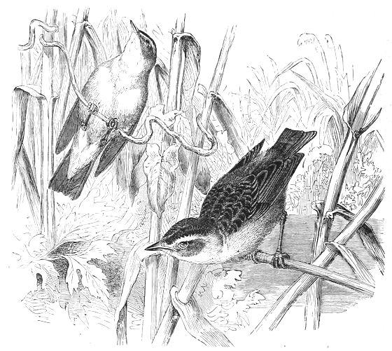 THE WARBLERS (Sylvia). The SONG WARBLERS (Sylvia). The TRUE SONG WARBLERS (Curruca):—The Sparrow-hawk Warbler—The Orpheus Warbler—The Greater Pettichaps, or Garden Warbler—The Lesser Whitethroat—The Capirote, or Black-cap—The White Throat—The Spectacled Warbler—The White-bearded Warbler—The Fire-eyed Warbler—Rüppell's Warbler—The Black-headed Fire-eyed Warbler—The Sardinian Fire-eyed Black-head—The Provence Fire-eyed Warbler, or Dartford Warbler. The TREE WARBLERS (Phylloscopus):—The Field Tree Warbler, or Willow Wren. The LEAF WRENS (Reguloides):—The Leaf Wren. The GARDEN WARBLERS (Hypolais):—The Melodious Willow Wren—The Chiff-Chaff—The Ashy Garden Warbler. The MARSH WARBLERS (Calamodytæ). The REED WARBLERS (Acrocephalus):—The True Reed Warbler. The SEDGE WARBLERS (Calamodus):—The Sedge Warbler. The GRASSHOPPER WARBLERS (Locustella):—The Grasshopper Warbler. The BUSH WARBLERS (Drymoica):—The Pinc-Pinc. The TAILOR BIRDS (Orthotomus):—The Long-tailed Tailor Bird—The Emu Wren 237-269