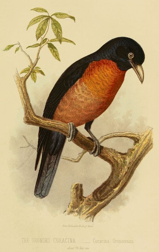 THE MANAKINS (Pipra). The ROCK BIRDS (Rupicola):—The Cock of the Rock. The TRUE MANAKINS (Pipra). The LONG-TAILED MANAKINS (Chiroxiphia):—The Long-tailed Manakin—The Tije—The Black-cap Manakin. The PANTHER BIRDS (Pardalotus):—The Diamond Bird. The BALD-HEADED CROWS (Gymnoderus):—The Capuchin Bird, or Bald Fruit Crow—The Umbrella Bird, or Umbrella Chatterer. The BELL BIRDS (Chasmarhynchus):—The Bare-necked Bell Bird—The Araponga—The True Bell Bird—The Three-wattled Bell Bird, or Hammerer. The THRUSHES (Turdidæ). The GROUND SINGERS (Humicola) 174-185