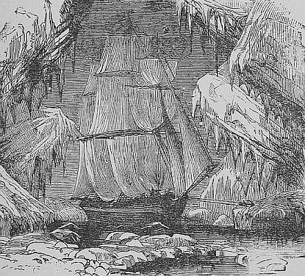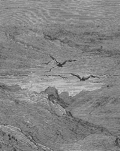 Where the rocks can be approached from the sea, a boat lands two men on some projecting ledge. Their only aid is a long pole terminating in a hook, and the rope by which they are tied together. One, using his hands and feet, proceeds to climb up the cliff to some higher ledge, while his comrade fixing the hook firmly in his leathern belt, pushes from below till the point is reached. He himself is then pulled upward, by the rope, till both stand together. Continuing this perilous journey, they often ascend to a height of five or six hundred feet above the sea. Here the birds are so tame that they have but to put forth their hand to catch them, and the work of destruction begins. As fast as killed, they are thrown into the sea and picked up by the boat’s crew in waiting below. Sometimes when the weather is fair, [Pg 28]the men spend several days on the cliff, sleeping at night on some broad ledge.