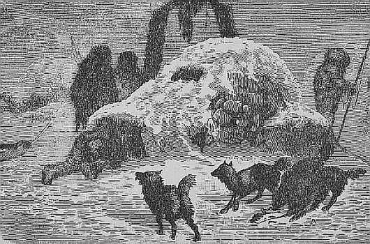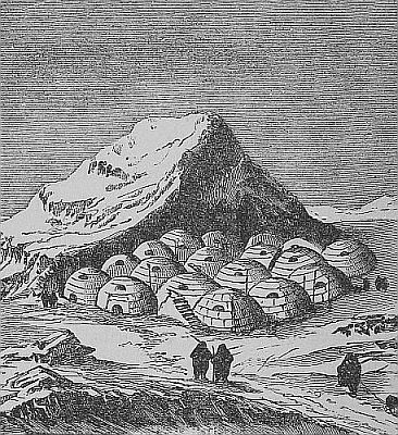 The Esquimau is a hearty eater. The intense cold to which he is always exposed gives him a raging appetite. Parry once made trial of the ability of a young man, who was furnished with all the food he wished. In twenty hours he had eaten eight and a half pounds of meat, nearly two pounds of bread, a pint and a quarter of rich soup, a tumbler and three wine glasses of spirits, and over a gallon of water. But the Esquimau is not alone in his appetite. At Jakutsk in Siberia, Sir George Simpson gave two natives each thirty six pounds of boiled beef, while the same amount of melted butter was put before them to drink. They entered upon their undertaking [Pg 76]with great zest. One was old, the other young. The younger man at first seemed to make the greater headway. “His teeth are good,” said his older opponent, “but with the help of my saint, (crossing himself) I will soon come up to him.” His was no idle boast, for in an hour all was devoured and the gorged champions, lying upon the floor, respectfully kissed the ground in token of gratitude to their benefactor.