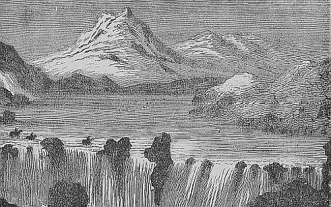 As the traveller approaches the coast of Iceland, his vessel passes cliff after cliff, standing out into the ocean, until at length she drops anchor in the harbor of the ancient town of Reykjavik. Small though it may be, it can boast of a long existence. Ingolfr, the Northman, in the year 869, flying from the tyranny of his sovereign, resolved to seek a new home in Iceland. Though his countrymen had visited the island, no successful settlement had been made. As he neared the stormy shores, he cast into the sea the sacred pillars of his former home, vowing to build a new town where they should land. At the present day the appearance of Reykjavik, is not such as we should expect from the romance of its foundation. “The town [Pg 97]consists of a collection of wooden sheds one story high—rising here and there into a gable end of greater pretensions,—flanked at either end by a suburb of turf huts. On every side of it extends a desolate plain of lava, that once must have boiled up red hot and fallen hissing into the sea. No tree or bush relieves the dreariness of the landscape, but before the door of each merchant’s house there flies a gay little pennon, and as you walk along the silent streets the rows of flower pots that peep out of the windows at once convince you that within each dwelling reigns the comfort of a woman-tended home.”