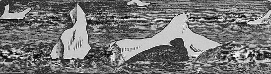 But the scene of greatest life, in the arctic regions, is to be found among the birds. On the rocky cliffs, that stand out in the Polar sea in the short northern summer, they are to be found in such quantities as to literally darken the sky. Auks, and gulls, and ducks, cover the rocks. The most daring arctic explorer has never penetrated to lands [Pg 23]where he has not found the eider duck. Well may this bird dare to make journeys into tracts where none can follow. With its warm coat it can bid defiance to the cold, and on its swift wing it can fly over fifty miles an hour, and should danger arise, can soon be beyond its reach. The hardy natives of Iceland gather each year large quantities of their feathers, which have a high value. [Pg 24]Reaching their nests they take from them the delicate feathers, which the female bird has pulled from her breast to make a soft covering for the expected young. No sooner does she find her nest bare, than she again pulls a fresh supply, which is again taken from her. A third time she lines anew her nest, and now she is left in peace, for if again disturbed, the bird deserts entirely her accustomed breeding place, and seeks a new region beyond the reach of man.