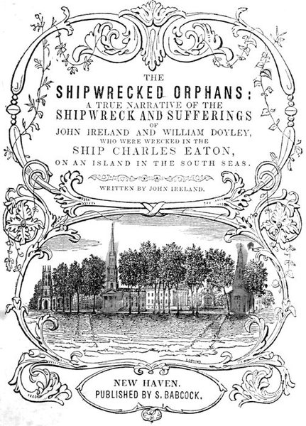 For this volume of Teller’s Tales, I have selected the “Shipwrecked Orphans, a True Narrative of the Sufferings of John Ireland” and a little child, named William Doyley, who were unfortunately wrecked in the ship Charles Eaton, of London, and lived for several years with the natives of the South Sea Islands. The remainder of the passengers and crew of this ill-fated ship, were most inhumanly murdered by the savages soon after they landed from the wreck. The Narrative was written by one of the Orphans, John Ireland, and I give it to you in nearly his own words, having made but few alterations in the style in which he tells the story of their sufferings.