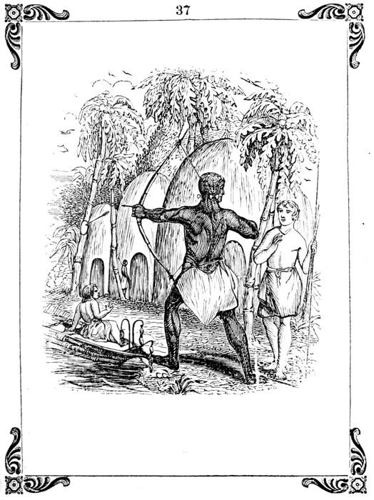 Soon after we had passed the first island, we saw a canoe paddling towards us, containing ten or twelve native Indians. A canoe is a rude kind of Indian boat. As they came towards us, they extended their arms, which we supposed meant that they were unarmed, and wished to be friendly.